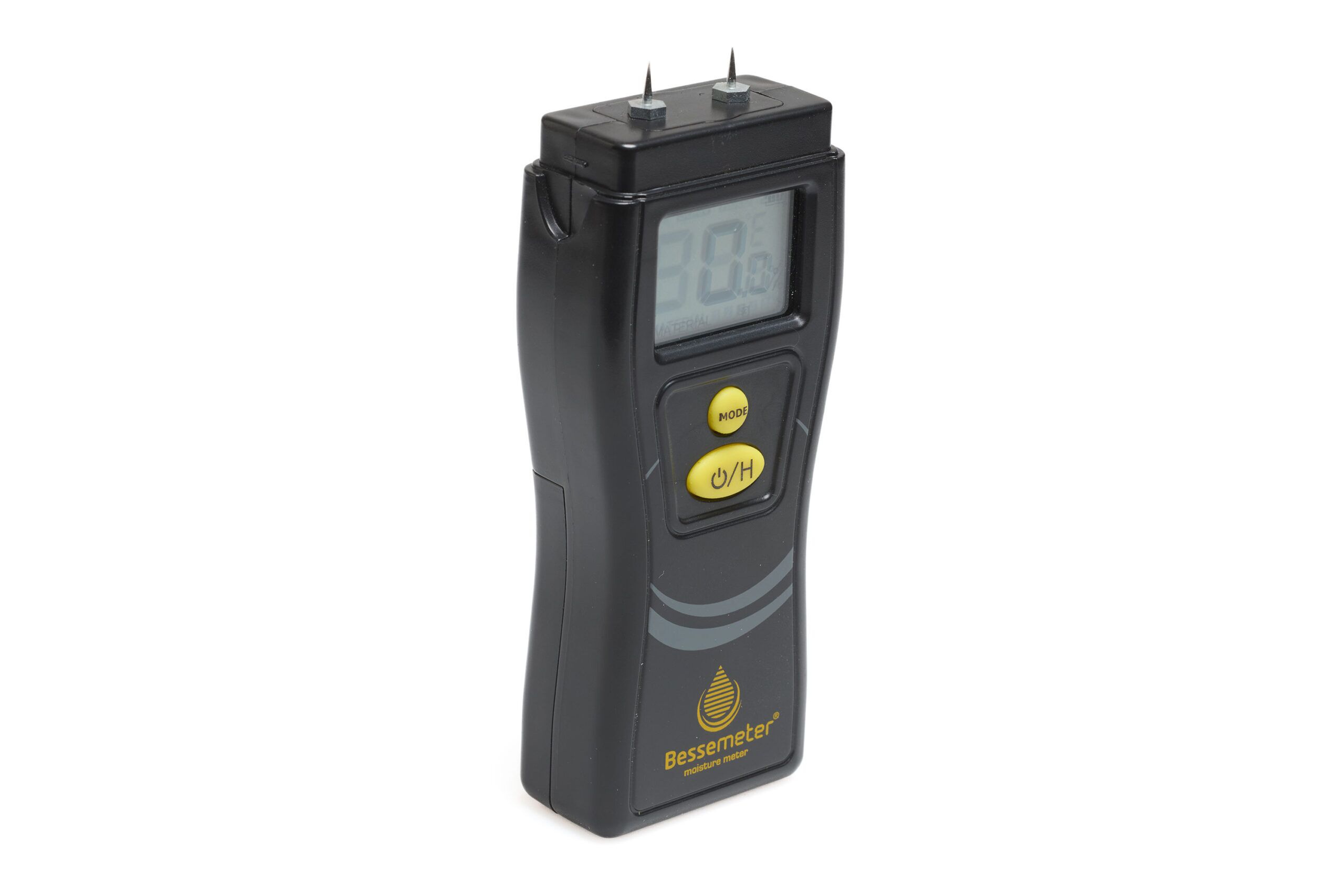 - Large LCD screen displays moisture content readings